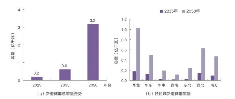 圖7 電氣化加速情景下規(guī)劃期內(nèi)新型儲能發(fā)展情況