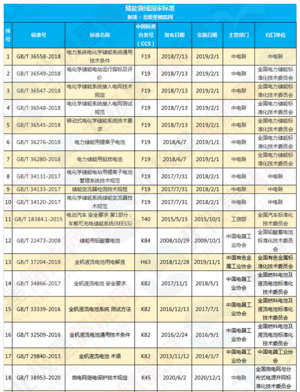 國家標準化管理委員會印發(fā)的《2020年國家標準立項指南》也指出要推動新能源發(fā)電并網(wǎng)、電力儲能等重要標準研制。2020年7月17日,國家能源局正式開啟了儲能試點示范項目申報,其示范目的也是要通過分析總結示范項目成功經(jīng)驗和存在問題,促進建立健全相關技術標準與工程規(guī)范。