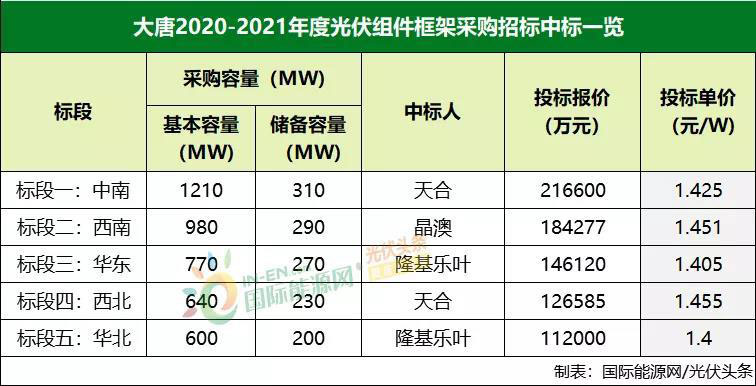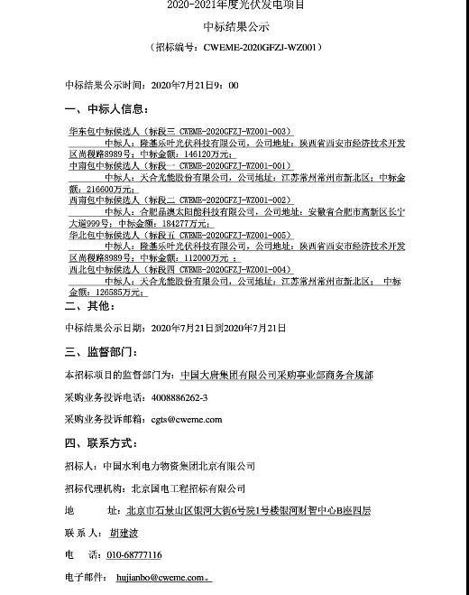 7月21,大唐公示2020-2021年度光伏組件采購中標結果。