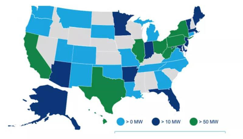 圖2 美國(guó)各州儲(chǔ)能部署分布情況