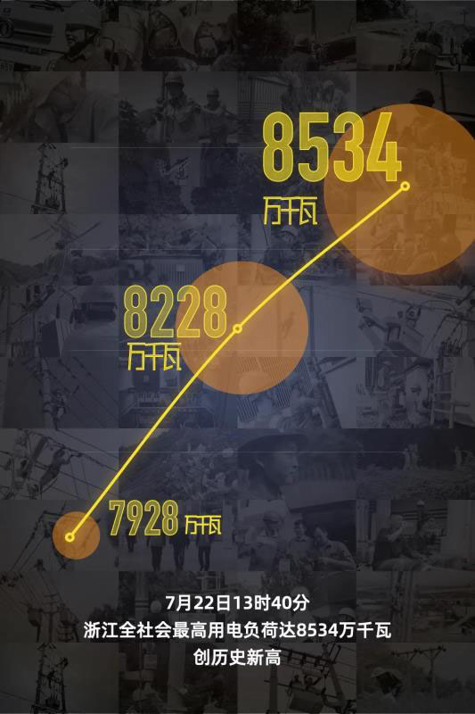 從昨天的8228萬千瓦到今天的8534萬千瓦,浙江電網(wǎng)全社會最高用電負(fù)荷一天內(nèi)增長306萬千瓦,相當(dāng)于一個衢州市的用電負(fù)荷。