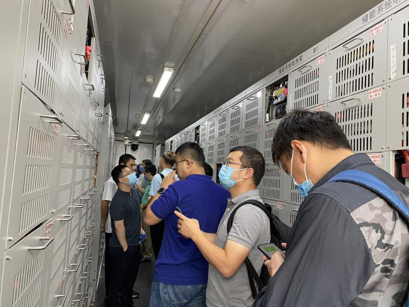 專家調(diào)研團走進(jìn)電池預(yù)制艙內(nèi)部了解項目實際運營情況