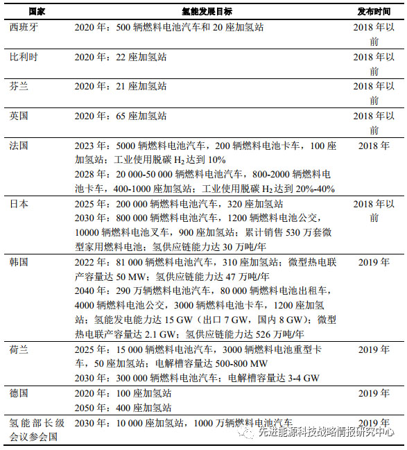 主要國家已設(shè)定的氫能發(fā)展目標(biāo)