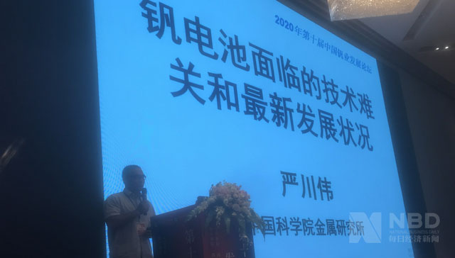 中國(guó)科學(xué)院金屬研究所研究員嚴(yán)川偉表示,大規(guī)模儲(chǔ)能環(huán)節(jié)適合釩電池。圖片來(lái)源:每經(jīng)記者 胥帥 攝