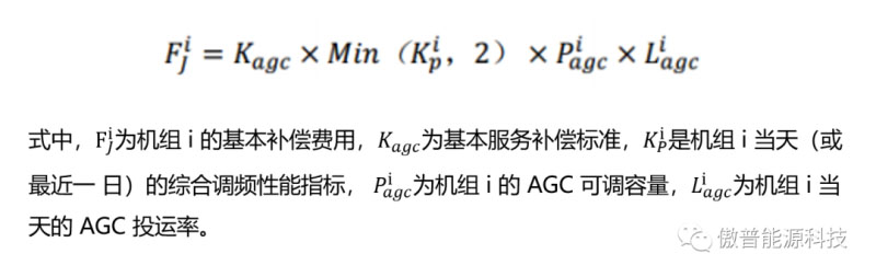 2020年6月30日,江蘇能源監(jiān)管辦會同江蘇省發(fā)展改革委印發(fā)《江蘇電力輔助服務(wù)(調(diào)頻)市場交易規(guī)則(試行)》,并于7月1日正式啟動電力輔助服務(wù)調(diào)頻市場試運行。根據(jù)文件,江蘇電力調(diào)頻輔助服務(wù)市場補償費用分為基本補償和調(diào)用補償兩類?;狙a償標(biāo)準Kagc為2元/MW;調(diào)用補償:依據(jù)調(diào)頻里程、調(diào)頻性能及里程單價計算,調(diào)頻里程申報價格的下限0.1元/兆瓦,上限1.2元/MW,補償價格為全國最低。具體計算如下: