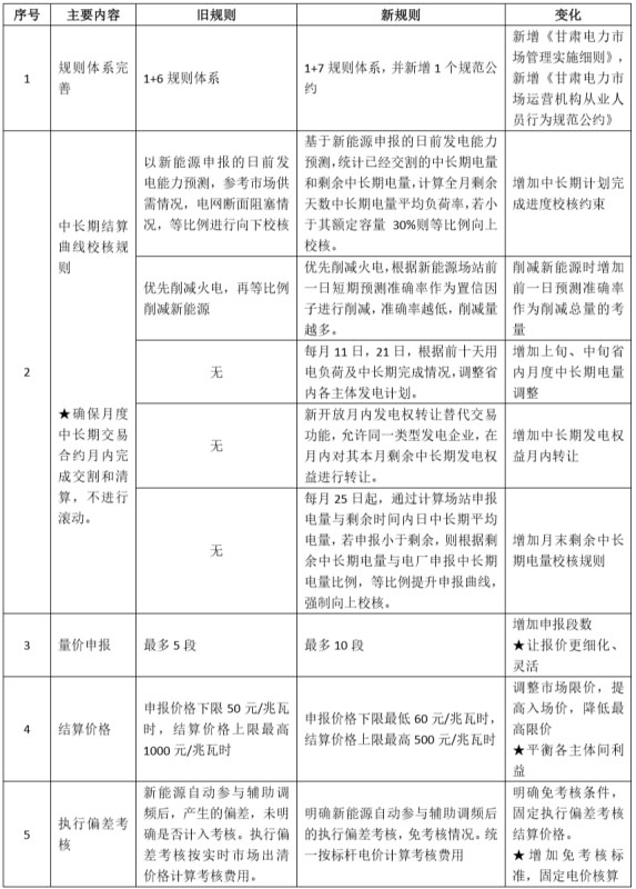 據(jù)介紹,甘肅此次展開現(xiàn)貨市場長周期結(jié)算試運行工作主要是針對新能源的中長期分解方式進行了詳細規(guī)定和補充,制定了中長期發(fā)電權(quán)益月內(nèi)轉(zhuǎn)讓的規(guī)定,降低了新能源因月度中長期合約分解執(zhí)行不完而產(chǎn)生不平衡資金的風(fēng)險。同時,對于價格申報的上限與結(jié)算上限進行了調(diào)整,提高了新能源的申報起始價格門檻,結(jié)算價格限價降低,平穩(wěn)了由于新能源不確定造成偏差結(jié)算費用。另外,還修訂了執(zhí)行偏差考核的結(jié)算標(biāo)準(zhǔn),由原來的按實時市場出清價格結(jié)算變更為按標(biāo)桿電價結(jié)算,降低了早晚高峰期間的考核,整體上利好于新能源消納以及減少考核得分。