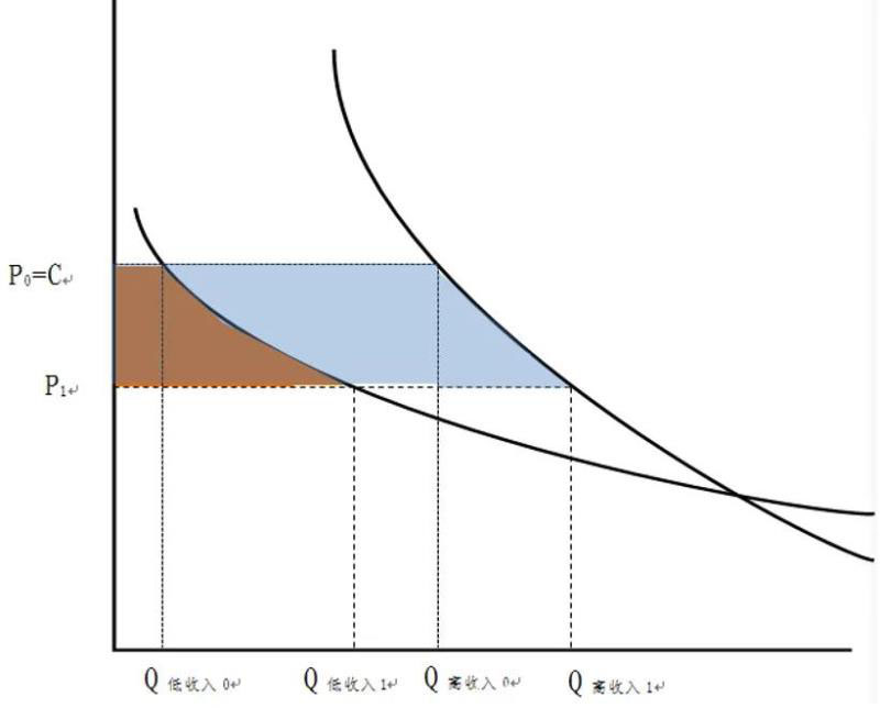 圖3 交叉補(bǔ)貼對(duì)不同收入水平居民的福利影響