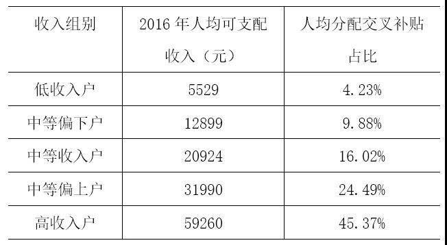 表1 “普惠制”特征下交叉補(bǔ)貼的人均分布情況