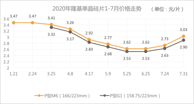 上述企業(yè)認(rèn)為,上周硅片價(jià)格調(diào)整至2.9元/片,實(shí)際漲價(jià)0.6元/片,并且該硅片價(jià)格已經(jīng)執(zhí)行,而2.9元的硅片價(jià)格對(duì)應(yīng)硅料價(jià)格約為100元/kg,“考慮需求穩(wěn)定發(fā)展、順應(yīng)供需關(guān)系,最終硅料也根據(jù)硅片漲幅進(jìn)行了跟進(jìn),最新報(bào)價(jià)提升至98元/g”。就在上周,單晶硅片龍頭隆基股份宣布再次再次調(diào)漲硅片價(jià)格,其中G1報(bào)價(jià)2.9元/片,M6為3.03元/片。
