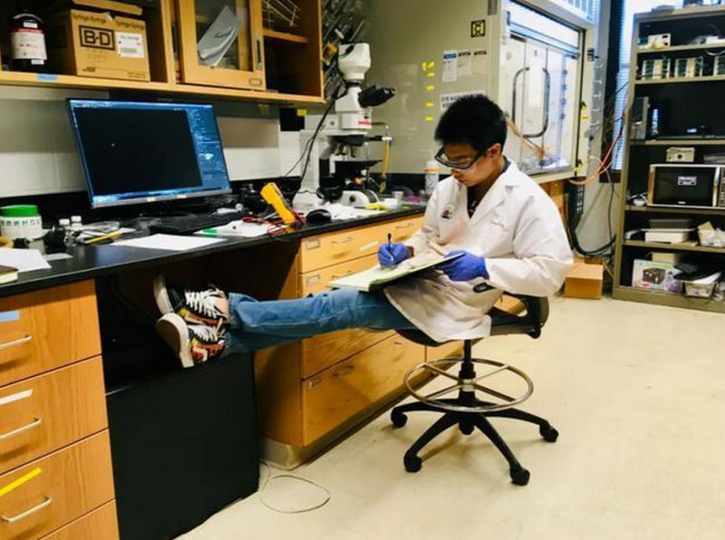 大學畢業(yè)時,他以第一作者身份發(fā)表了兩篇綜述,并且以第二作者身份發(fā)表了一篇科研論文,這些成果幫助他申請到了美國圣路易斯華盛頓大學的全獎博士。