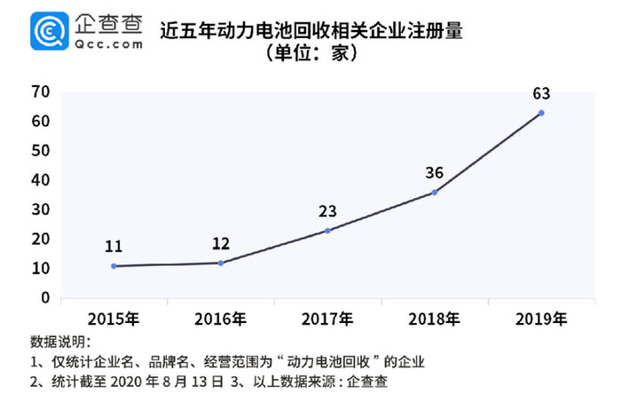 動力電池回收:相關(guān)企業(yè)共有208家,今年前七月新增41家