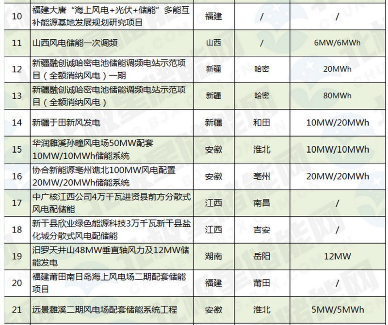2019年底安徽首個風電儲能項目——華潤濉溪孫疃風電場50MW工程配套10MW/10MWh儲能系統(tǒng)PC工程開始招標,后許繼電氣以單價2.154元/Wh的價格中標,2020年6月19日,該項目正式并網投運。由此拉開安徽風電配置儲能序幕。隨后遠景濉溪二期風電儲能項目、協(xié)合新能源集團亳州譙北100MW風電配置20MW/20MWh儲能系統(tǒng)項目提上日程,華能也曾發(fā)布安徽蒙城縣小澗二期、許瞳風電場項目配置儲能系統(tǒng)EPC招標公告。