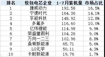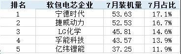 2020年7月中國市場軟包電池裝機量TOP5