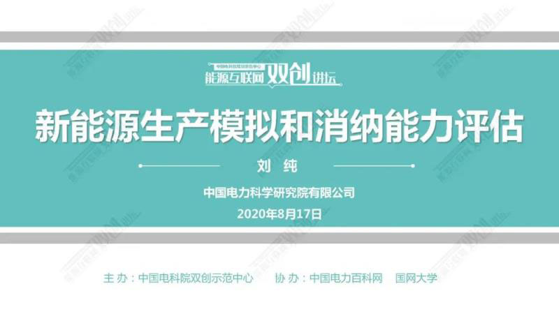 2020年8月17日,在中國電科院雙創(chuàng)中心主辦的能源互聯(lián)網(wǎng)雙創(chuàng)講壇上,中國電力科學(xué)研究院首席技術(shù)專家劉純主講《新能源生產(chǎn)模擬和消納能力評估》。