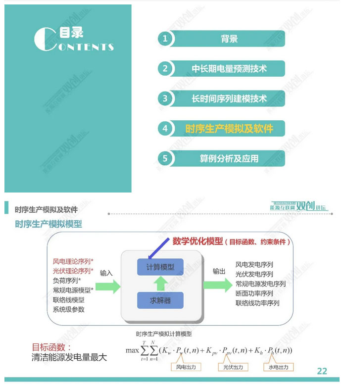 在論壇上,劉純通過中長期電量預(yù)測技術(shù)、長時間序列建模技術(shù)、時序生產(chǎn)模擬及軟件、算例分析及應(yīng)用等關(guān)鍵點詳細(xì)闡述了新能源生產(chǎn)模擬和消納能力評估的關(guān)系。他表示,隨著新能源裝機(jī)的持續(xù)提高,政府主管部門、電網(wǎng)公司以及電源企業(yè)未來難免會遇到各種各樣的問題。從規(guī)劃層面看,在電網(wǎng)規(guī)劃、電源建設(shè)、負(fù)荷預(yù)測、系統(tǒng)運行原則(包括新能源利用率水平)確定的條件下,考慮電力系統(tǒng)運行安全和經(jīng)濟(jì)性是個能裝多少的問題。而消納能力則是在新能源資源及并網(wǎng)容量、常規(guī)電源裝機(jī)、負(fù)荷水平條件下,受電力系統(tǒng)安全穩(wěn)定運行約束下,能發(fā)多少的問題。