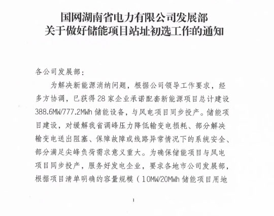 今年3月,國(guó)網(wǎng)湖南省電力有限公司發(fā)展部曾下發(fā)《關(guān)于做好儲(chǔ)能項(xiàng)目站址初選工作的通知》,文件顯示湖南28家企業(yè)承諾新能源發(fā)電項(xiàng)目配套儲(chǔ)能,總規(guī)模達(dá)388.6MW/777.2MWh。此次啟動(dòng)招標(biāo)的三個(gè)項(xiàng)目均位列其中。