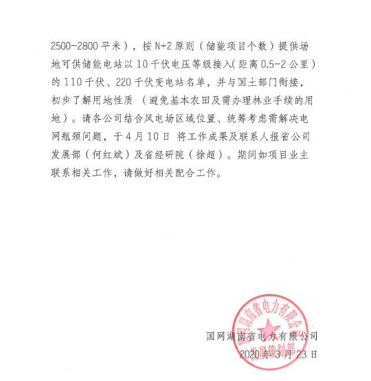 三峽新能源湖南道縣洪塘營(yíng)風(fēng)電場(chǎng)10MW / 20MWh儲(chǔ)能示范項(xiàng)目EPC工程,計(jì)劃于2020年9月20日開工,2020年12月20日具備帶電條件。要求投標(biāo)人近5年內(nèi)具有至少1個(gè)風(fēng)電/光伏配套儲(chǔ)能或其它含儲(chǔ)能項(xiàng)目的可行性研究、設(shè)計(jì)或EPC業(yè)績(jī),還要求項(xiàng)目經(jīng)理至少擔(dān)任過(guò)一項(xiàng)48MW及以上風(fēng)電場(chǎng)或1MW級(jí)及以上風(fēng)電/光伏配套儲(chǔ)能或其它含儲(chǔ)能項(xiàng)目經(jīng)驗(yàn)。