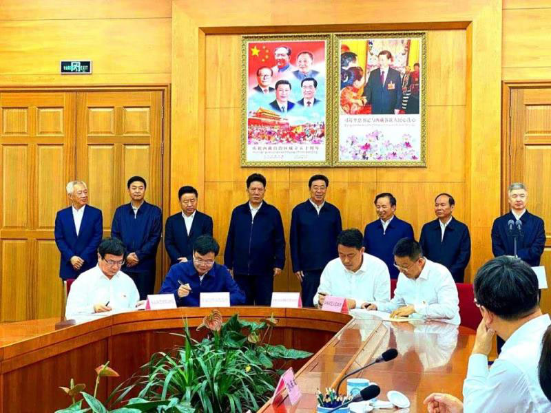 9月3日下午,水發(fā)集團(tuán)有限公司與日喀則市人民政府戰(zhàn)略合作框架協(xié)議簽約儀式在西藏拉薩隆重舉行。省委副書記、省長李干杰,省政府黨組成員、副省長凌文等山東省領(lǐng)導(dǎo)同志,與西藏自治區(qū)黨委書記吳英杰,自治區(qū)黨委副書記、區(qū)人大常委會主任洛桑江村,自治區(qū)黨委副書記、主席齊扎拉,自治區(qū)黨委常務(wù)副書記、區(qū)政協(xié)黨組書記丁業(yè)現(xiàn),自治區(qū)黨委副書記、常務(wù)副主席莊嚴(yán),自治區(qū)黨委副書記嚴(yán)金海,自治區(qū)黨委常委、秘書長劉江等領(lǐng)導(dǎo)出席儀式并見證簽約。山東省國資委黨委書記、主任張斌出席簽約,水發(fā)集團(tuán)黨委副書記、總經(jīng)理劉肖軍,日喀則市委副書記、市長劉虎山代表雙方簽約。