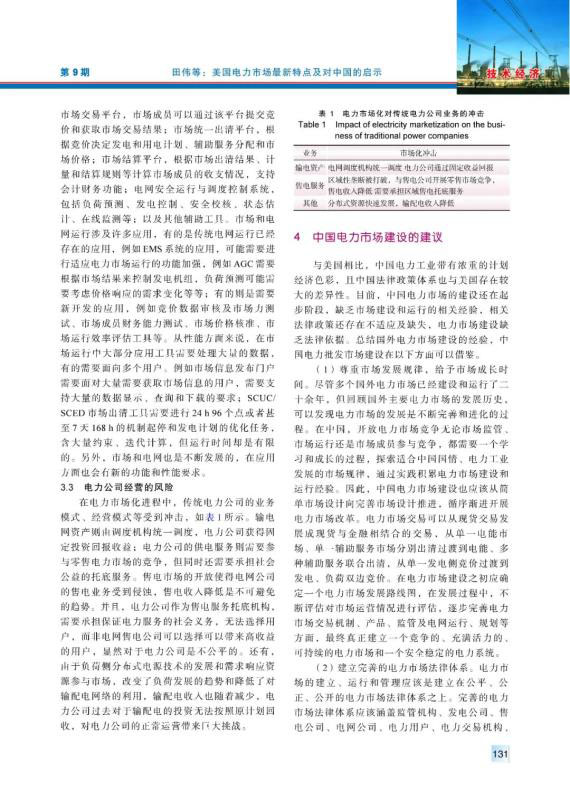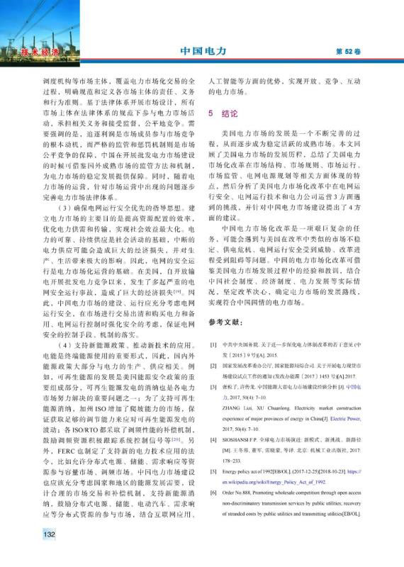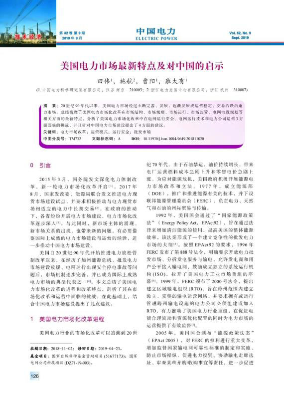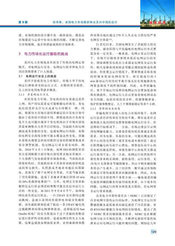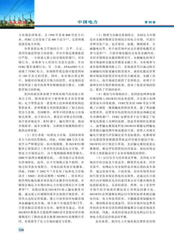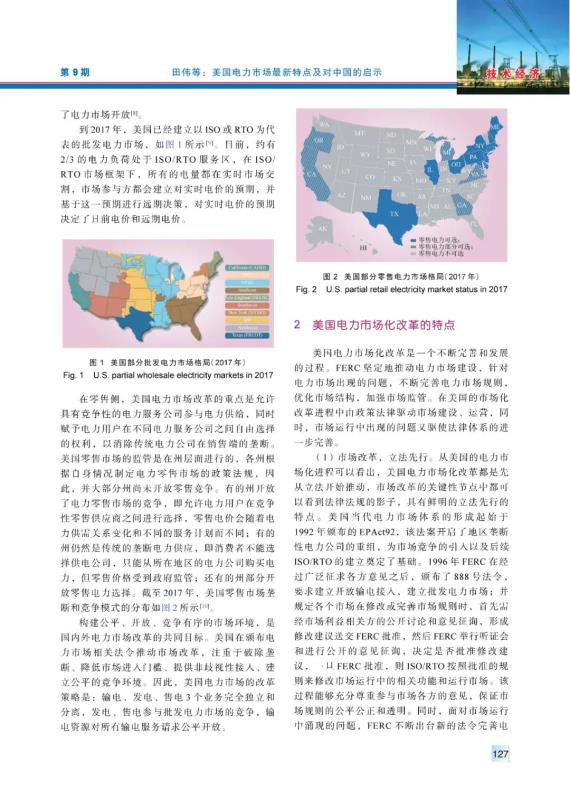 20世紀(jì)90年代以來,美國電力市場經(jīng)過不斷完善、發(fā)展,逐漸發(fā)展成運(yùn)營穩(wěn)定、交易活躍的電力市場??偨Y(jié)梳理了美國電力市場化改革在市場結(jié)構(gòu)、市場規(guī)則、市場運(yùn)行、市場監(jiān)管、電網(wǎng)電源規(guī)劃等相關(guān)方面的最新特點(diǎn),分析了美國電力市場化改革中在電網(wǎng)運(yùn)行安全、電網(wǎng)運(yùn)行技術(shù)和電力公司運(yùn)營3方面面臨的挑戰(zhàn),并且針對中國電力市場建設(shè)提出了4方面的建議。