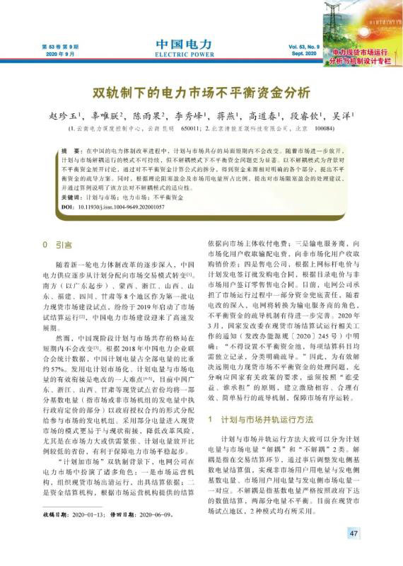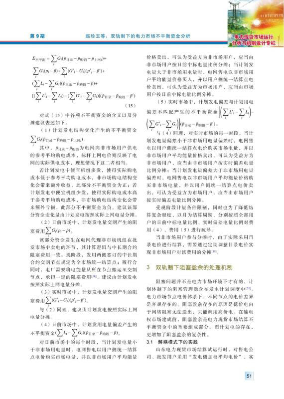 在中國的電力體制改革進程中,計劃與市場共存的局面短期內(nèi)不會改變。隨著市場進一步放開,計劃與市場解耦運行的模式不可持續(xù),但不解耦模式下不平衡資金問題更為顯著。以不解耦模式為背景對不平衡資金展開討論,通過對不平衡資金計算公式的拆分,得到資金來源相對明確的各個部分,提出不平衡資金的疏導方案。同時,根據(jù)理論阻塞盈余及市場用電量所占比例,提出對市場阻塞盈余的處理建議,并通過算例說明了該方法對不解耦模式的適應性。