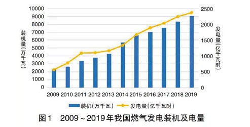 受我國大氣污染形勢依然嚴(yán)峻及碳排放總量的限制,燃煤電廠發(fā)展空間日益受限,清潔能源逐步成為未來能源發(fā)展新的增長點。作為清潔低碳化石能源,天然氣發(fā)電的環(huán)境效益及其在能源發(fā)展格局中的重要作用越來越受到關(guān)注。2015年電力體制改革和油氣市場逐步寬松以來,我國天然氣發(fā)電快速發(fā)展,在政策引導(dǎo)下,裝機(jī)容量從2014年的5697萬千瓦發(fā)展到2019年的9022萬千瓦,占全國發(fā)電裝機(jī)總量的4.49%,發(fā)電裝機(jī)年均增長31.67%。發(fā)電量為2362億千瓦時,占全國總發(fā)電量的3.22%,年均達(dá)到增長35.43%。天然氣發(fā)電裝機(jī)容量年均增速和電量增速,均遠(yuǎn)高于全國發(fā)電裝機(jī)容量年均增速和電量增速(見圖1)。