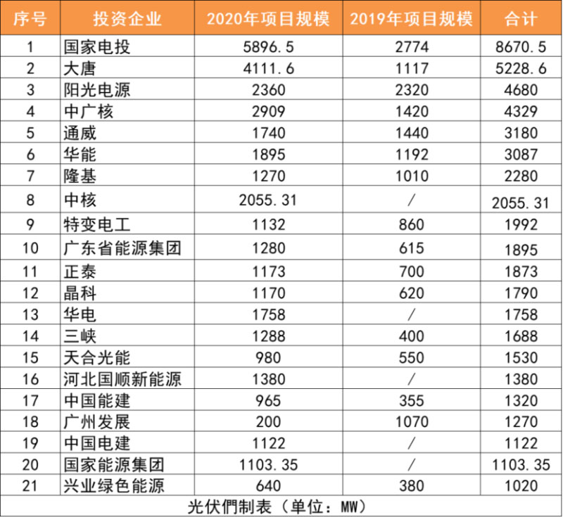 另一方面,以國家電投、大唐、中廣核、中核、華電、華能、國家能源集團為代表的央企獲批規(guī)?;揪尸F(xiàn)出翻倍增長的勢頭,尤其是大唐、中核、華電這三家2020年項目獲批規(guī)模暴增,成為當之無愧的“黑馬”。值得一提的是,此前不少專注于水電、風電項目開發(fā)的投資商、設計院等也在將目光轉(zhuǎn)向光伏電站,例如風電巨無霸國家能源集團也在2020年開啟了光伏電站投資之旅,并且計劃在“十四五”期間加大光伏投資力度。