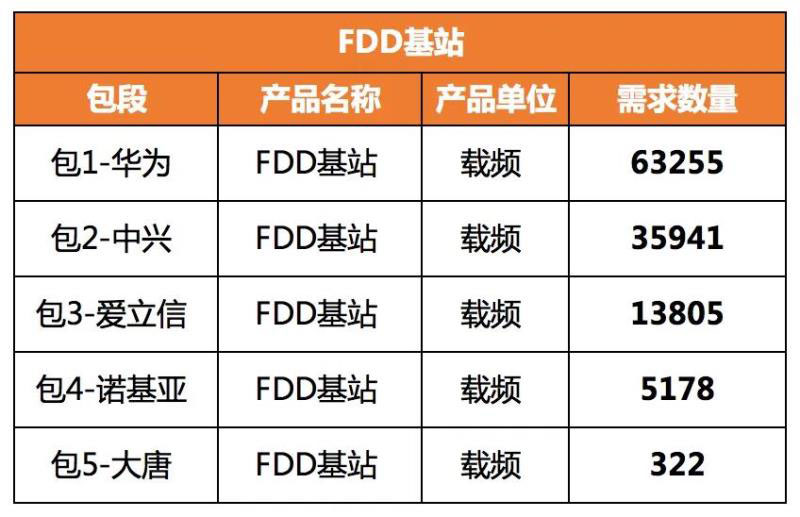 ? FDD約4.25萬站(約11.85萬載頻),包括LTE FDD 900M新建基站0.76萬站,LTE FDD 1800M新建基站3.49萬站(其中宏基站2.96萬、室分站0.35萬、高鐵站0.18萬);