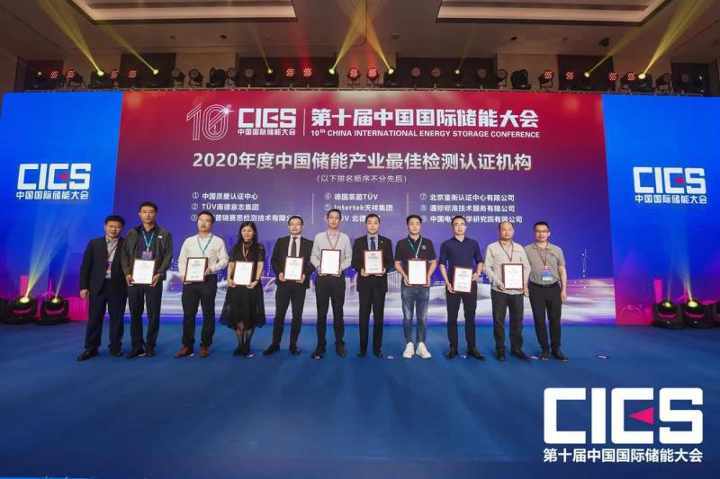 TüV南德榮膺2020年度中國儲能產(chǎn)業(yè)最佳檢測認(rèn)證機(jī)構(gòu)頒獎,TüV南德智慧能源事業(yè)部大中華區(qū)技術(shù)總監(jiān)邱必力先生代表領(lǐng)獎(左三)