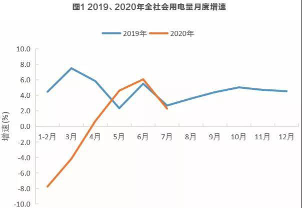 全社會(huì)用電量增速總體呈顯著回升態(tài)勢。2020年1-7月,全國全社會(huì)用電量40381億千瓦時(shí),同比下降0.7%,增速同比降低5.3個(gè)百分點(diǎn)。分月看,全社會(huì)用電量增速自3月份起逐月回升,4月份由負(fù)轉(zhuǎn)正,5月份首超上年同期水平,6月份達(dá)到6.1%,7月份受長江中下游降水異常偏多、華北華東華中氣溫明顯偏低等因素影響,增速為2.3%,同比、環(huán)比分別下降0.4、3.8個(gè)百分點(diǎn)。