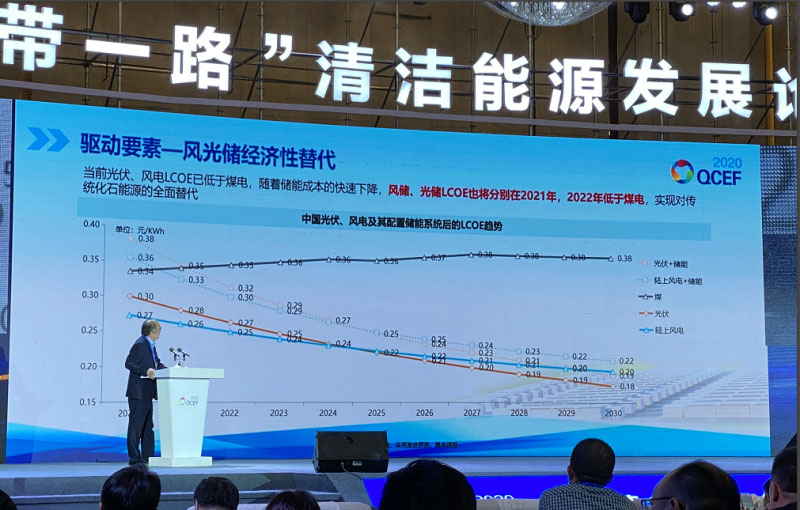 風(fēng)光儲(chǔ)能方面,靠動(dòng)力電池以及整個(gè)產(chǎn)業(yè)的規(guī)模趨勢(shì),硬成本、強(qiáng)行下降,目前下降速度在8%左右,即使如此,我們計(jì)算大概到2022年風(fēng)光儲(chǔ)能的成本也將低于煤電,而且風(fēng)光儲(chǔ)能的LCOE下降速度比較快。所以想要提前5年實(shí)現(xiàn)我們的碳減排與碳中和目標(biāo),主要還是靠光伏、風(fēng)電、儲(chǔ)能這幾個(gè)生態(tài)體系的建立。