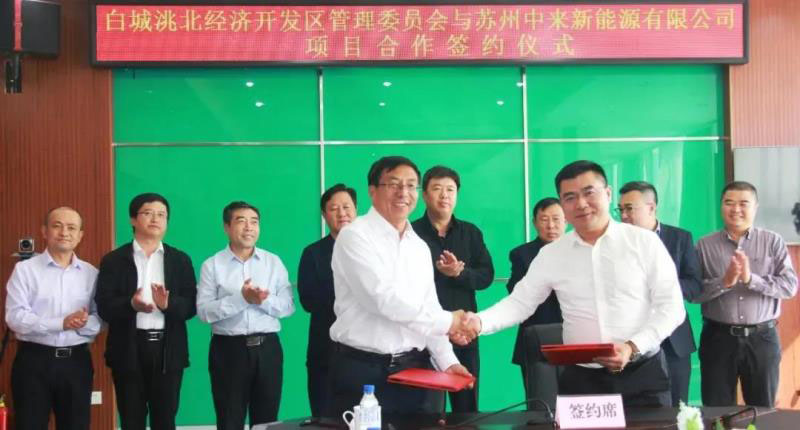 2020年9月25日,中來(lái)股份下屬全資子公司蘇州中來(lái)新能源有限公司(以下簡(jiǎn)稱“蘇州中來(lái)新能源”)與白城洮北經(jīng)濟(jì)開(kāi)發(fā)區(qū),就智慧生態(tài)新能源城市建設(shè)簽署戰(zhàn)略合作協(xié)議。