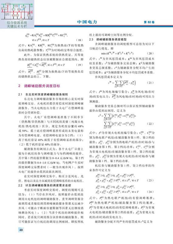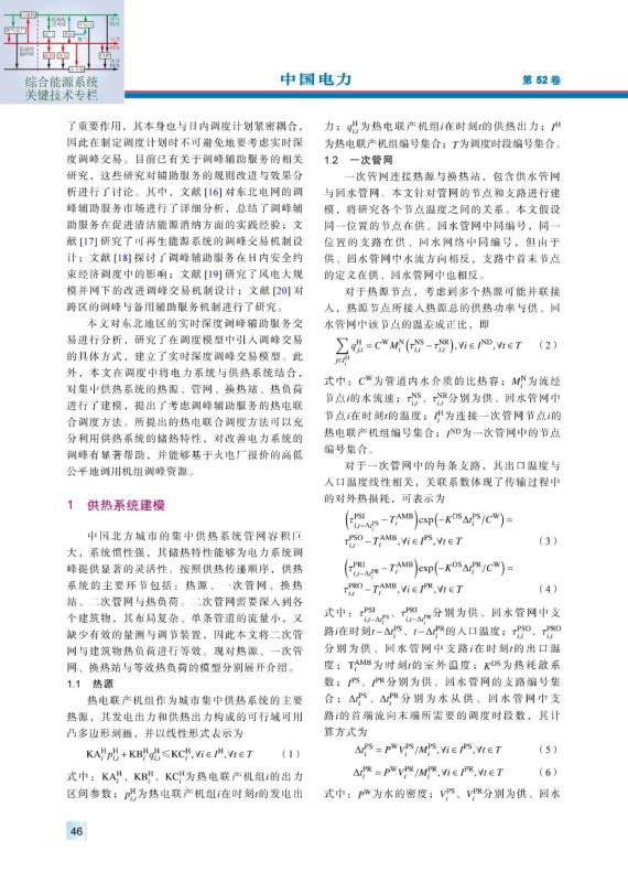 摘要:中國三北地區(qū)風(fēng)資源豐富,但受制于熱電聯(lián)產(chǎn)機(jī)組以熱定電的出力特性,在供熱季節(jié)棄風(fēng)嚴(yán)重。集中供熱系統(tǒng)覆蓋的范圍大,管道容積巨大,儲(chǔ)熱能力與熱慣性強(qiáng),如能對(duì)集中供熱系統(tǒng)加以合理調(diào)節(jié),可對(duì)改善電力系統(tǒng)調(diào)峰、促進(jìn)風(fēng)電消納起到顯著效果。為了改變電網(wǎng)調(diào)峰能力不足的現(xiàn)狀,中國各地陸續(xù)開展調(diào)峰輔助服務(wù)市場,以激勵(lì)火電機(jī)組改造,提高靈活性,挖掘出力下限。在此背景下,針對(duì)考慮調(diào)峰輔助服務(wù)的熱電聯(lián)合調(diào)度方法開展研究,對(duì)供熱系統(tǒng)進(jìn)行了建模以刻畫其動(dòng)態(tài)特性,并在目標(biāo)函數(shù)中計(jì)及了輔助服務(wù)的調(diào)用順序。在省網(wǎng)規(guī)模的系統(tǒng)進(jìn)行了仿真測(cè)試,驗(yàn)證了所提出模型的合理性,并計(jì)算了其在促進(jìn)風(fēng)電消納方面的經(jīng)濟(jì)效益。