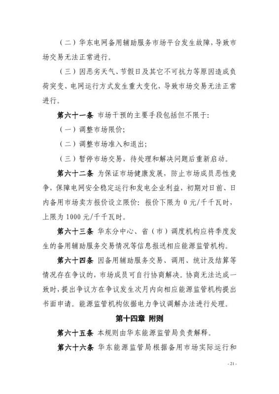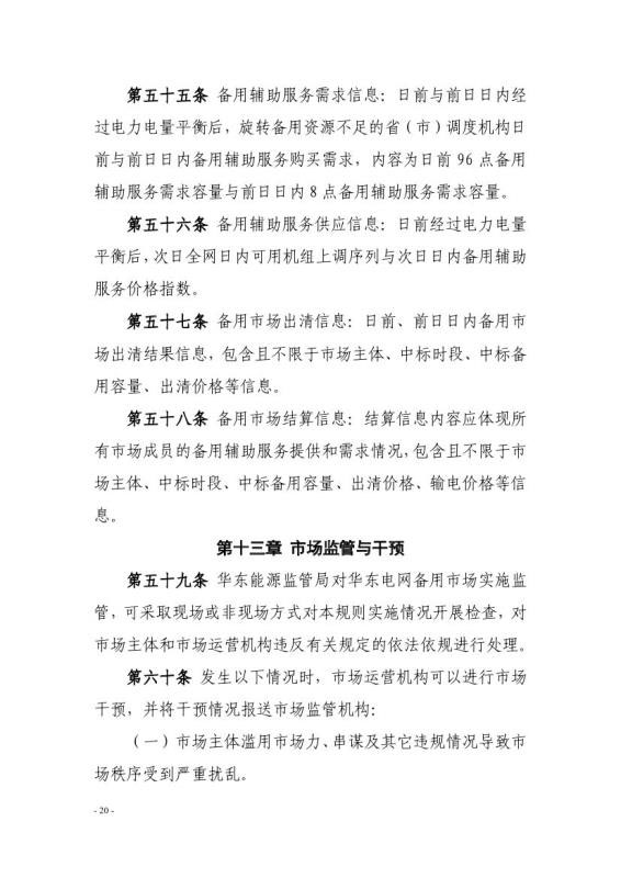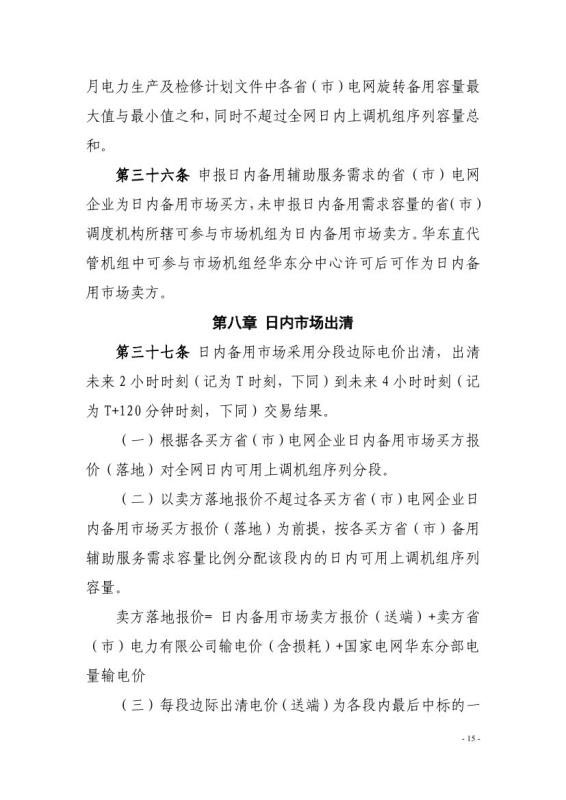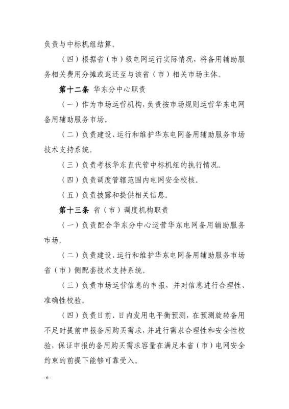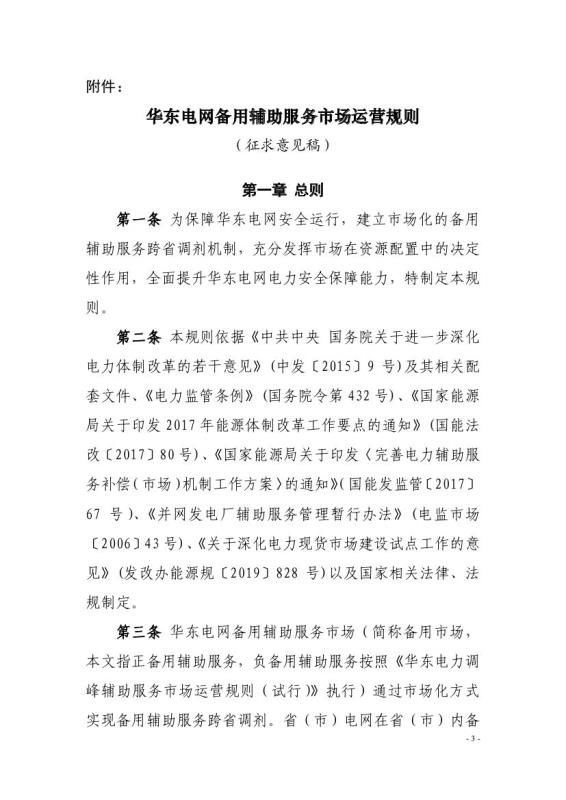 為貫徹落實(shí)《國家能源局關(guān)于印發(fā)<完善電力輔助服務(wù)補(bǔ)償(市場)機(jī)制工作方案>的通知》(國能發(fā)監(jiān)管〔2017〕67號(hào))、《國家發(fā)展改革委國家能源局關(guān)于提升電力系統(tǒng)調(diào)節(jié)能力的指導(dǎo)意見》(發(fā)改能源〔2018〕364號(hào))等文件要求,建立備用輔助服務(wù)市場化跨省調(diào)劑機(jī)制,提升華東電網(wǎng)電力安全保障能力,我局組織起草了《華東電網(wǎng)備用輔助服務(wù)市場運(yùn)營規(guī)則(征求意見稿)》(詳見附件)?,F(xiàn)向社會(huì)公開征求意見。