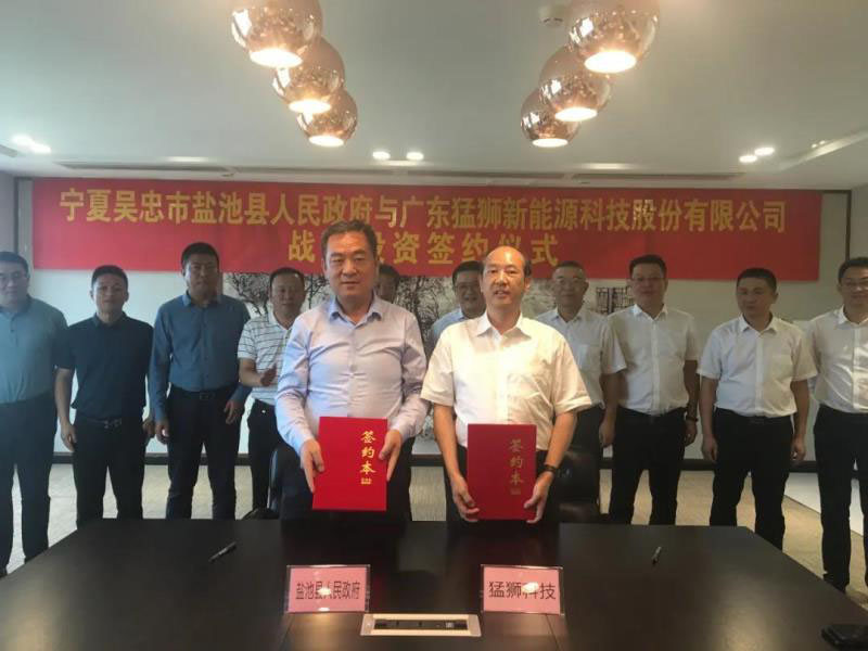 10月12日,廣東猛獅新能源科技股份有限公司(以下簡稱“猛獅科技”)與寧夏回族自治區(qū)鹽池縣人民政府(以下簡稱“鹽池縣”)簽署了廣東猛獅新能源科技股份有限公司新能源裝備制造及研究應用一體化綜合示范基地項目協(xié)議書。吳忠市市委常委、鹽池縣縣委書記滑志敏、副縣長張晨,猛獅科技董事長陳樂伍、總裁王少武等出席了簽字儀式。張晨副縣長和郝身健副總裁代表各自單位簽署了合作框架協(xié)議。