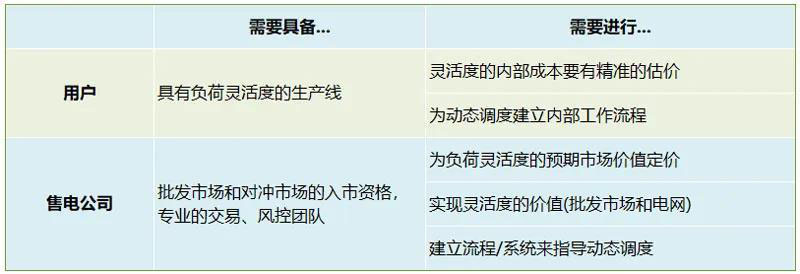 2.工業(yè)和大型商業(yè)用戶通常青睞專門為自身用電特色或商業(yè)模式定制的產(chǎn)品,而且可能愿意接受較大尺度的市場(chǎng)風(fēng)險(xiǎn)。此外,一些工商用戶的設(shè)備具有一定的運(yùn)行靈活度,可以將工業(yè)用戶生產(chǎn)線的“靈活度”,在現(xiàn)貨市場(chǎng)“變現(xiàn)”,或提供給“調(diào)度”能力。