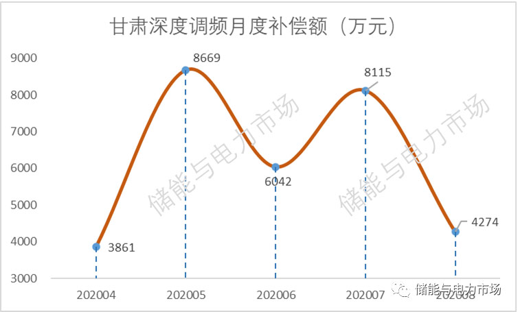 從數(shù)據(jù)上看,甘肅省的AGC月度補(bǔ)償額度不大,基本位于500萬(wàn)左右。但2020年8月份出現(xiàn)了一次大的提升,較2020年7月份556萬(wàn)增加了195.82%,達(dá)到1664萬(wàn)元。