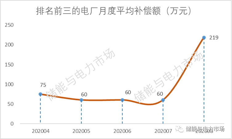 而排名前三的電廠(chǎng)平均月補(bǔ)償額,也從60萬(wàn)左右上升到了超過(guò)200萬(wàn)。