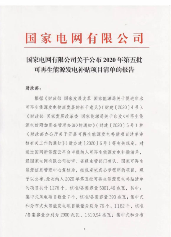 根據(jù)《財政部 國家發(fā)展改革委 國家能源局關于促進非水可再生能源發(fā)電健康發(fā)展的若干意見》(財建〔2020〕4號)、《財政部 國家發(fā)展改革委 國家能源局關于印發(fā)<可再生能源電價附加資金管理辦法>的通知》(財建〔2020〕5號)和《財政部辦公廳關于開展可再生能源發(fā)電補貼項目清單審核有關工作的通知》(財辦建〔2020〕6號)規(guī)定,國家電網(wǎng)有限公司積極配合各省級能源主管部門和國家可再生能源信息管理中心,為符合中央財政補助條件的可再生能源發(fā)電項目提供補貼清單申報服務。