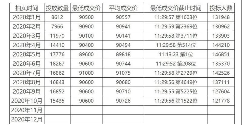 上海市公布的信息顯示,10月份燃油車滬牌合計(jì)拍賣總數(shù)15435輛,其中個(gè)人額度投放14000輛;參加拍賣人數(shù)121778人,中標(biāo)率12.7%。拍賣總數(shù)和中標(biāo)率相比9月的16852輛和13.2%有所下滑。