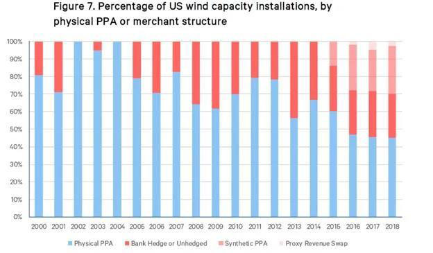 在美國,可再生能源參與中長期市場主要有三種方法:1)傳統(tǒng)購售電合同,2)“虛擬” (synthetic) 購售電合同,3)純商業(yè)模式 (merchant)