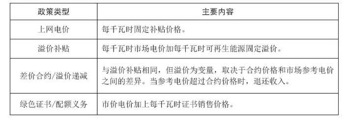 依照歐盟可再生能源指令有關(guān)規(guī)定,各成員國根據(jù)國情制定了各自的國家可再生能源行動(dòng)計(jì)劃和支持政策,其中絕大多數(shù)支持政策集中在發(fā)電行業(yè),包括上網(wǎng)電價(jià)、溢價(jià)補(bǔ)貼、差價(jià)合約、綠色證書等。歐洲可再生能源政策機(jī)制是激勵(lì)行業(yè)快速發(fā)展的關(guān)鍵。
