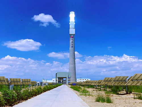 共和光熱項目采用單塔式太陽能集熱系統(tǒng),配置定日鏡場(20㎡定日鏡30016面,鏡場總采光面積約為60.032萬㎡),配套裝機容量為50MW汽輪發(fā)電機組額定功率滿發(fā)約6小時的熔鹽儲熱系統(tǒng),具備常規(guī)火力發(fā)電復雜的工藝流程,與傳統(tǒng)的光伏發(fā)電相比具有連續(xù)、穩(wěn)定輸出的特點,即使在夜間或陰雨天也可源源不斷的輸送清潔電力資源。