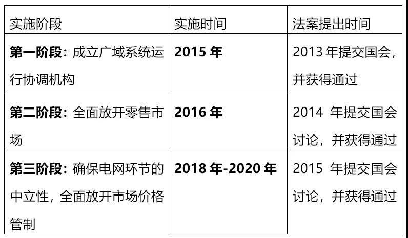 2011年福島核電事故后,日本提出新一輪電力改革思路框架;2013年,日本內(nèi)閣通過新一輪電力改革方案。2015年,本參議院通過了新的《電氣事業(yè)法》修正案,提出改革方案第三階段內(nèi)容。三個階段的改革方案全部制定完成,并上升為法律。