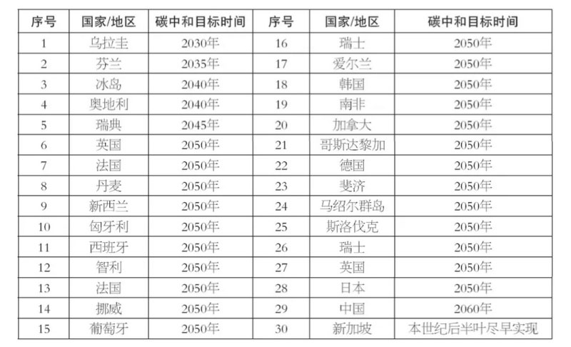 表1 全球已設(shè)定碳中和目標(biāo)時(shí)間的國家/地區(qū)