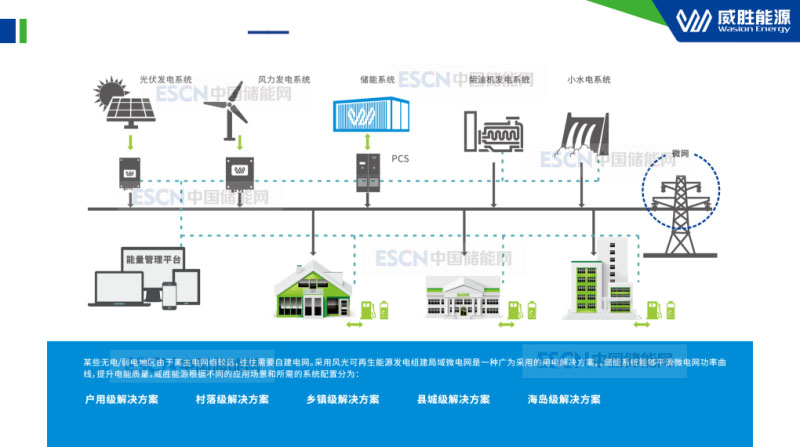 威勝能源提供的儲能方案有很多種,從電源側(cè)、電網(wǎng)側(cè)、到用戶側(cè),威勝都有可以應(yīng)用的方案,其他包括微電網(wǎng),從戶級到村級、到縣級到海島都有,還有分布式離網(wǎng)的儲能應(yīng)用方案。