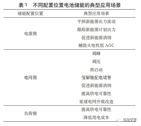 電池儲(chǔ)能電站可靈活配置在電力系統(tǒng)的電源側(cè)、電網(wǎng)側(cè)、負(fù)荷側(cè),滿足差異化儲(chǔ)能應(yīng)用需求,不同配置位置電池儲(chǔ)能的典型應(yīng)用場(chǎng)景見表1。