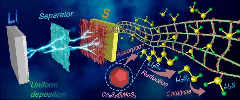 4.用Co9S8@MoS2核?殼結構解開MoS2的能帶結構提高鋰?硫電池的催化活性
