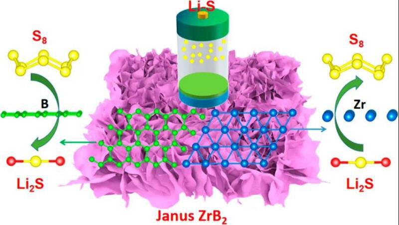 1)結合第一性原理計算和光譜學研究,研究人員證實了在局部暴露的B和Zr位置上內置的Li-S電化學Janus晶體刻面自介導行為,其中帶負電的B位置主要介導了放電過程,而帶正電的Zr原子可在充電過程中將LiPS進一步氧化為最終產物S,即使在高電流密度和高硫負荷下,也能實現(xiàn)高硫利用率。