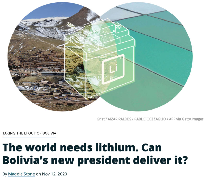 Grist網(wǎng)站發(fā)表署名Maddie Stone的文章,題目是:The world needs lithium. Can Bolivia’s new president deliver it?(世界需要鋰,玻利維亞的新總統(tǒng)能保障供應(yīng)嗎?)。