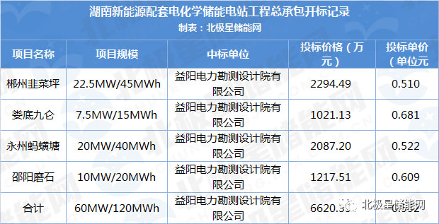 11月26日,湖南郴州韭菜坪等四個(gè)新能源配套電化學(xué)儲(chǔ)能電站工程總承包開標(biāo),結(jié)果顯示四個(gè)項(xiàng)目中標(biāo)候選人均為益陽電力勘測(cè)設(shè)計(jì)院有限公司,四個(gè)項(xiàng)目總投標(biāo)額達(dá)6620萬元。此次招標(biāo)不包含儲(chǔ)能電池等核心設(shè)備。